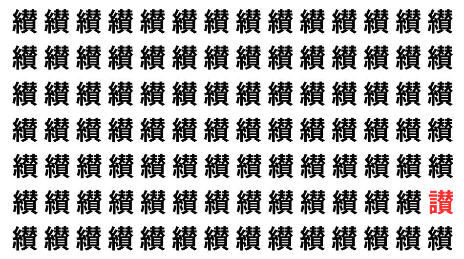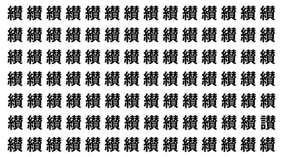 たくさんの「纉」の中に、よく似た別の漢字が1文字だけ隠れています。