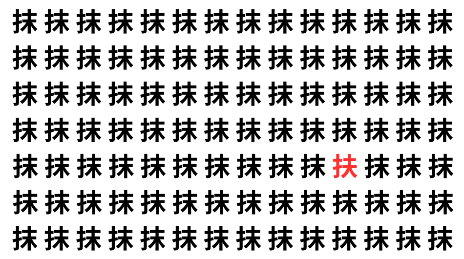 たくさんの「抹」の中に、よく似た別の漢字が1文字だけ隠れています。