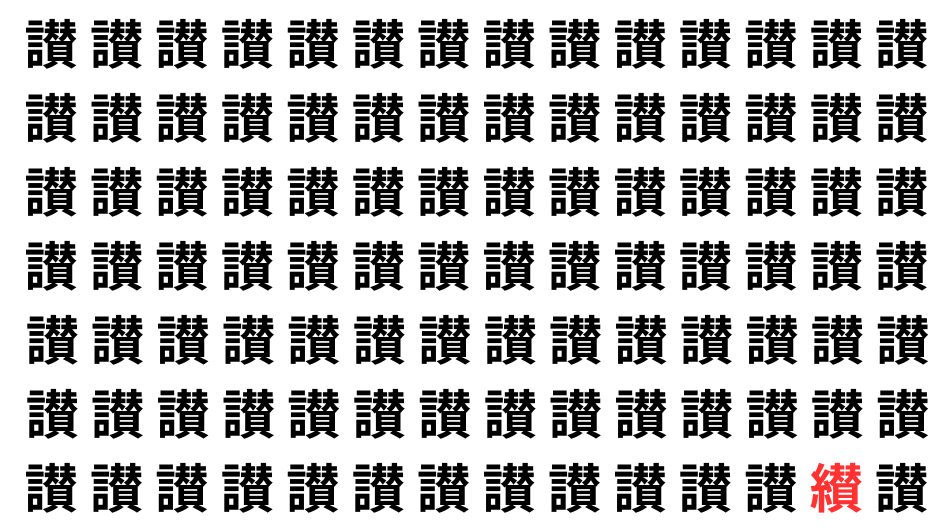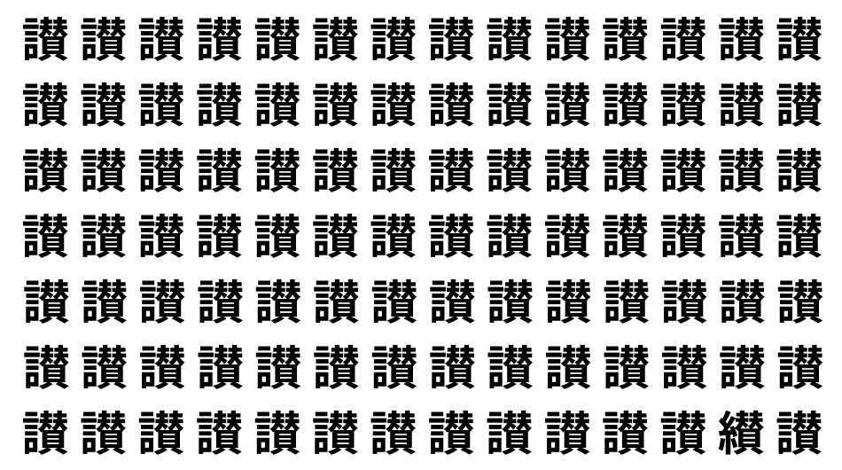 たくさんの「讃」の中に、よく似た別の漢字が1文字だけ隠れています。