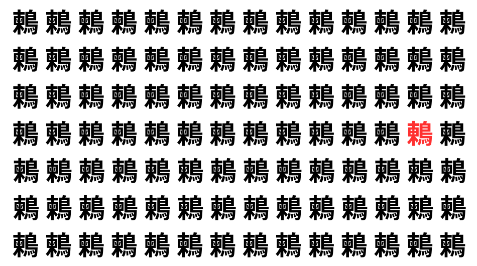 たくさんの「鶫」の中に、よく似た別の漢字が1文字だけ隠れています。