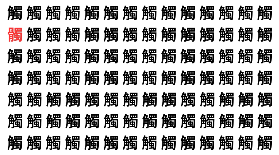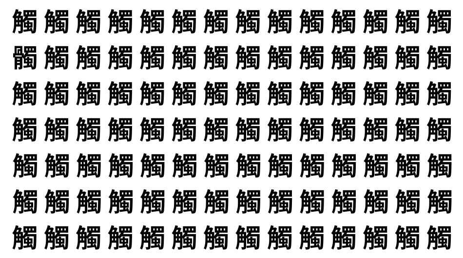 たくさんの「觸」の中に、よく似た別の漢字が1文字だけ隠れています。