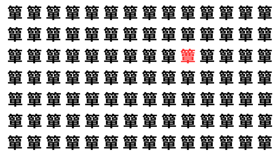 たくさんの「簞」の中に、よく似た別の漢字が1文字だけ隠れています。