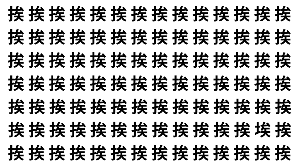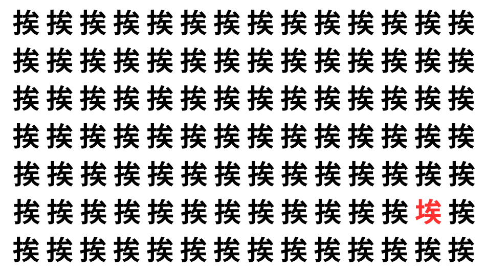 たくさんの「挨」の中に、よく似た別の漢字が1文字だけ隠れています。
