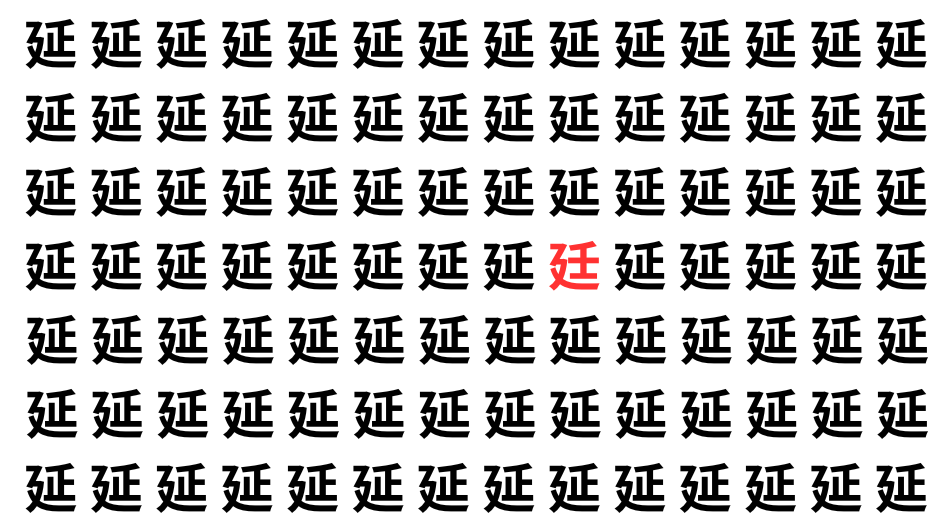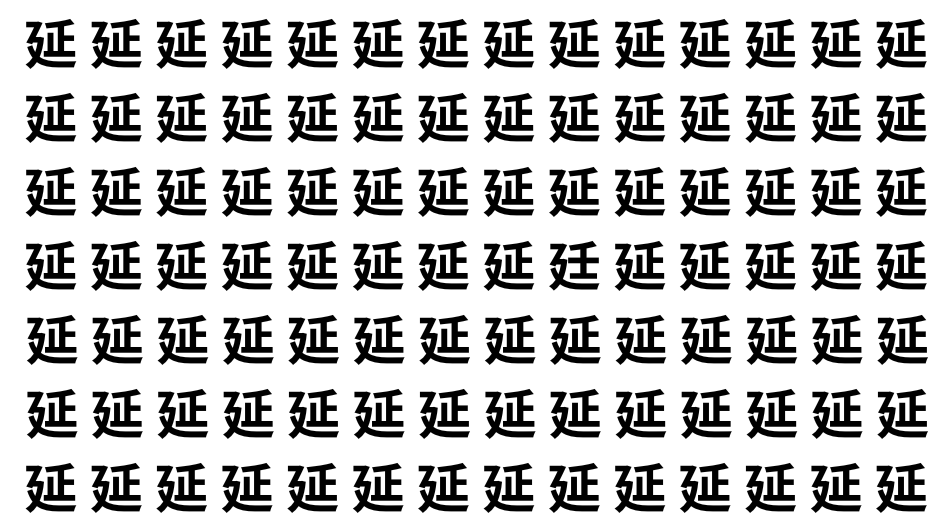 たくさんの「延」の中に、よく似た別の漢字が1文字だけ隠れています。