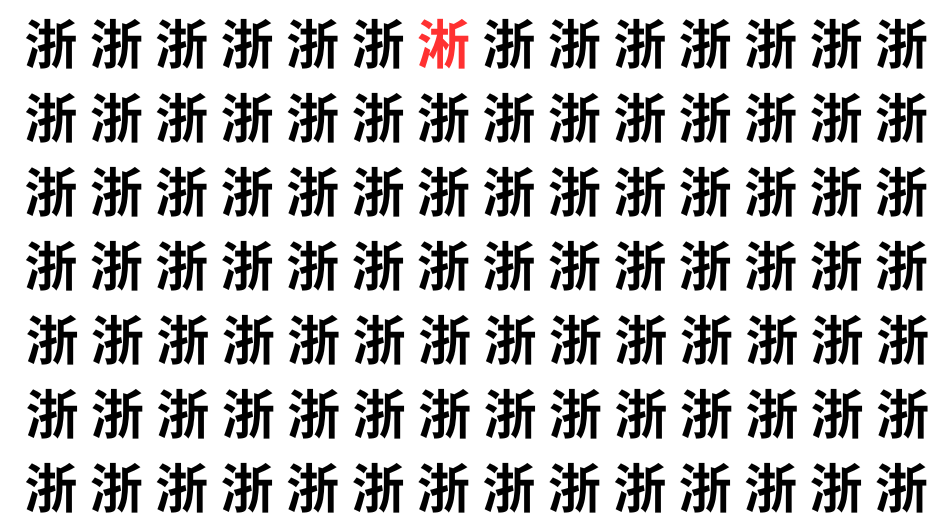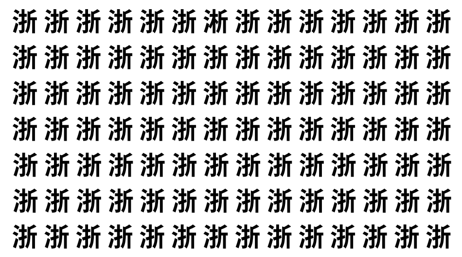 たくさんの「浙」の中に、よく似た別の漢字が1文字だけ隠れています。