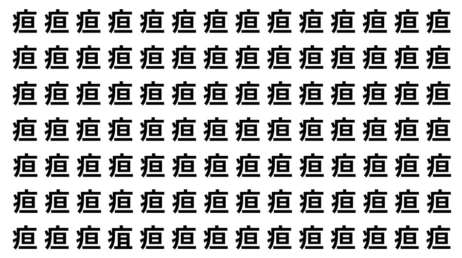 たくさんの「疸」の中に、よく似た別の漢字が1文字だけ隠れています。