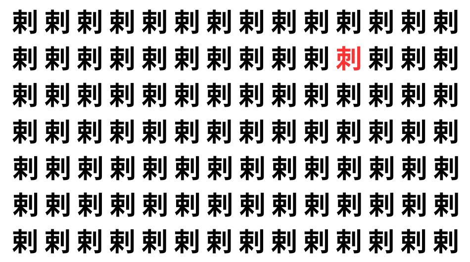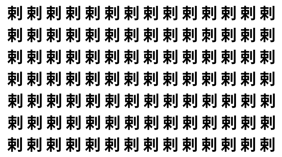 たくさんの「剌」の中に、よく似た別の漢字が1文字だけ隠れています。