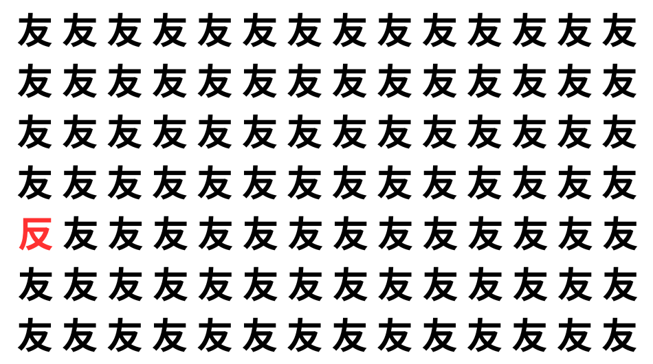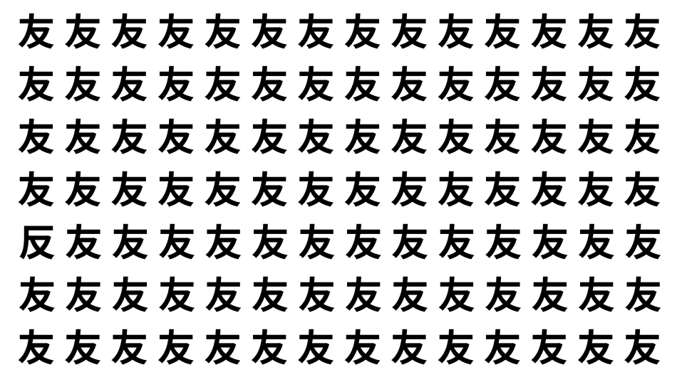 たくさんの「友」の中に、よく似た別の漢字が1文字だけ隠れています。