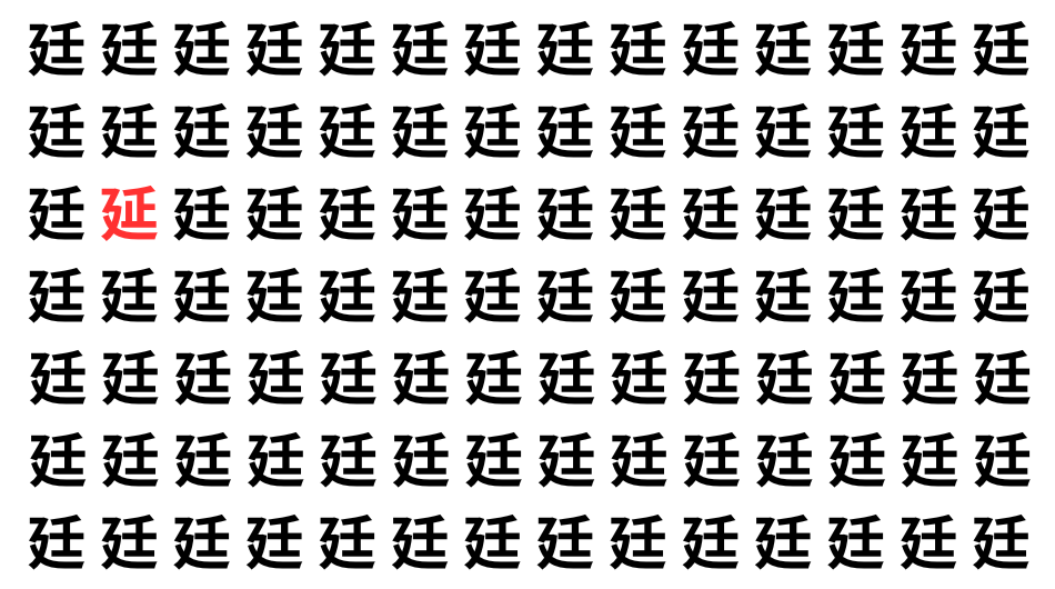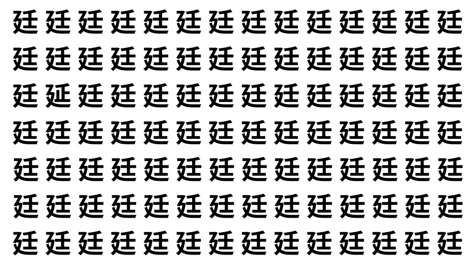 たくさんの「廷」の中に、よく似た別の漢字が1文字だけ隠れています。