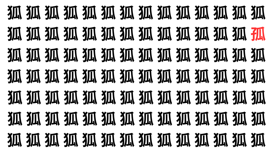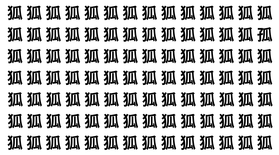 たくさんの「狐」の中に、よく似た別の漢字が1文字だけ隠れています。
