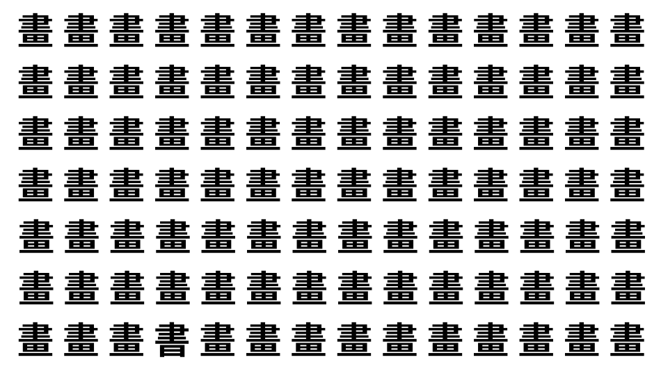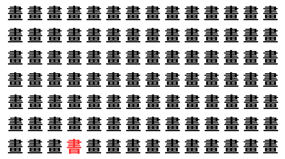たくさんの「畫」の中に、よく似た別の漢字が1文字だけ隠れています。