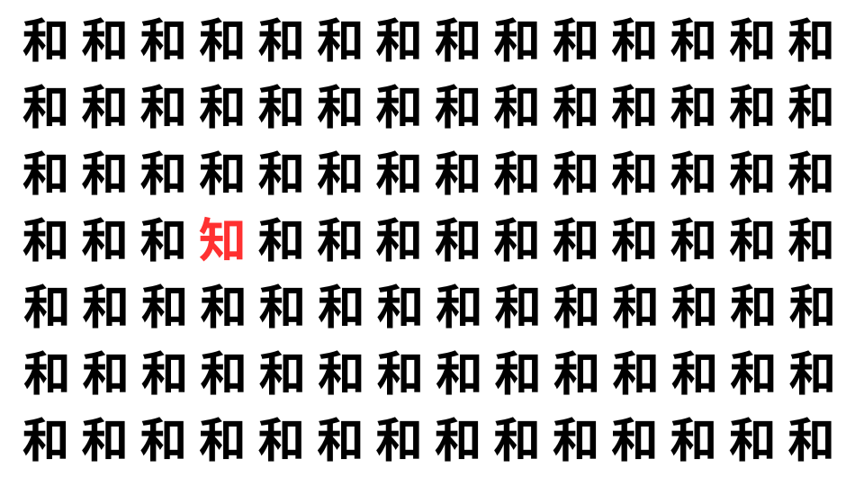 たくさんの「和」の中に、よく似た別の漢字が1文字だけ隠れています。