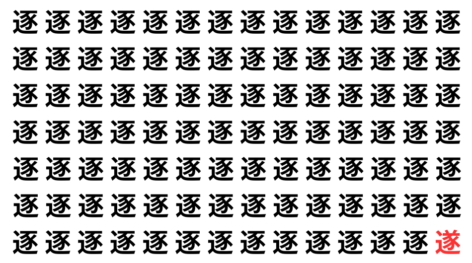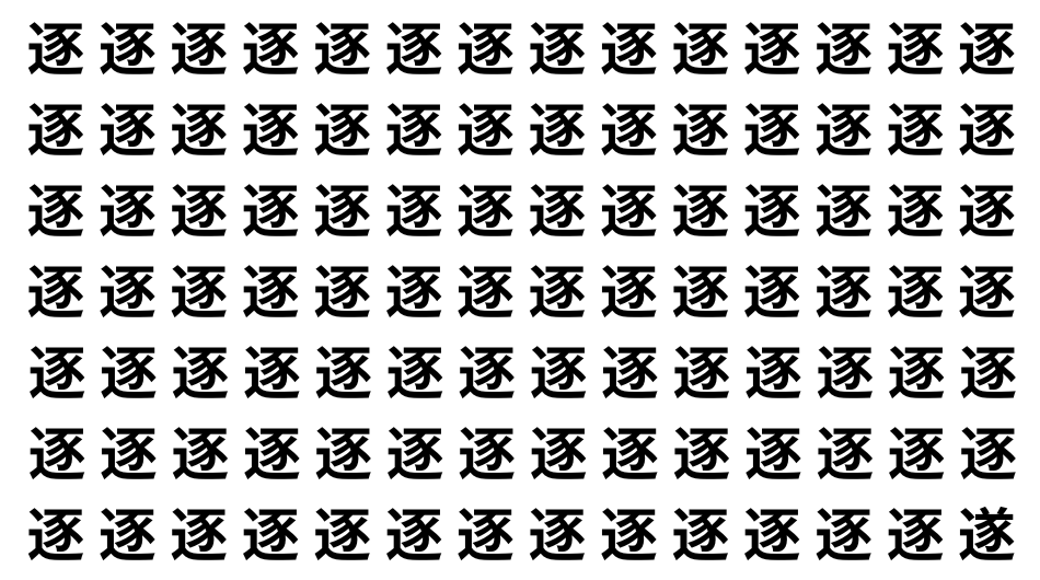 たくさんの「逐」の中に、よく似た別の漢字が1文字だけ隠れています。