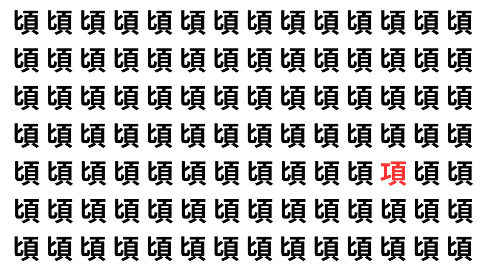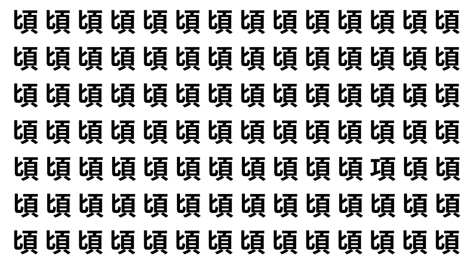 たくさんの「頃」の中に、よく似た別の漢字が1文字だけ隠れています。