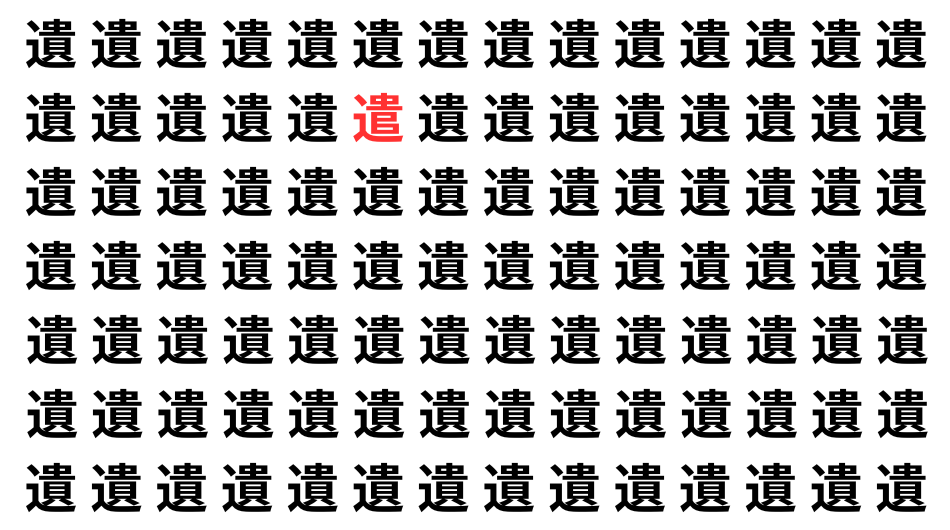 たくさんの「遺」の中に、よく似た別の漢字が1文字だけ隠れています。