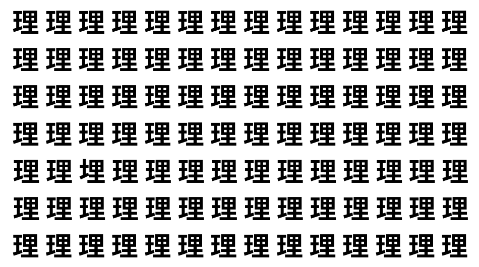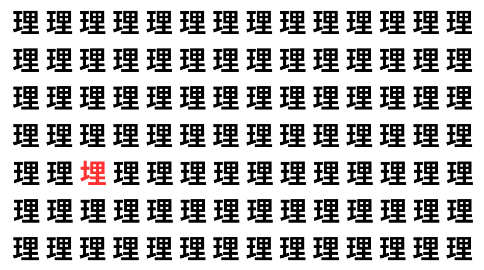たくさんの「理」の中に、よく似た別の漢字が1文字だけ隠れています。