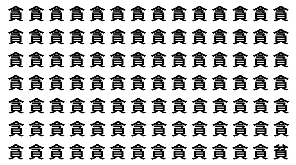 たくさんの「貪」の中に、よく似た別の漢字が1文字だけ隠れています。