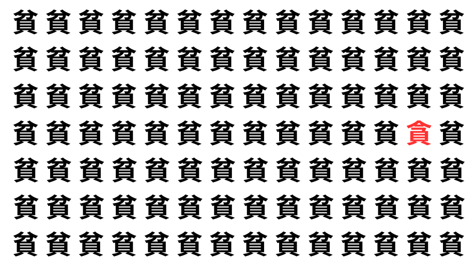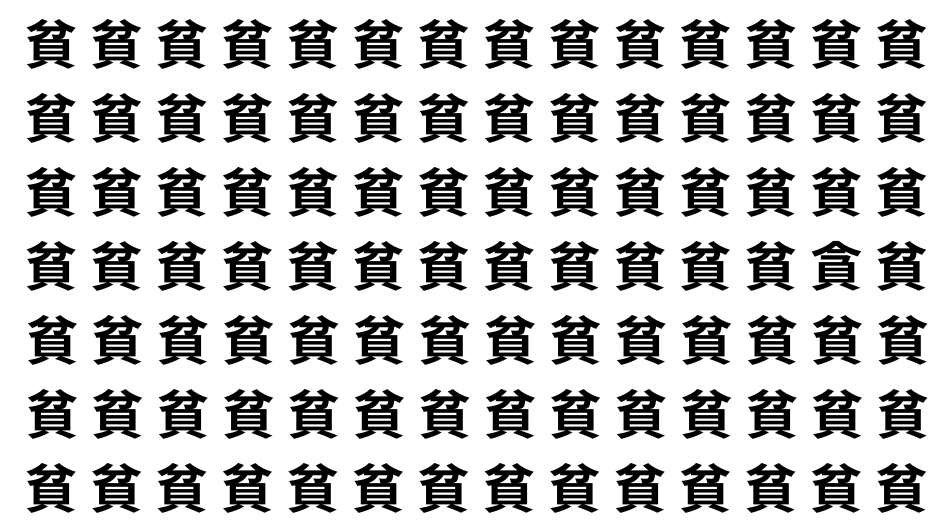 たくさんの「貧」の中に、よく似た別の漢字が1文字だけ隠れています。