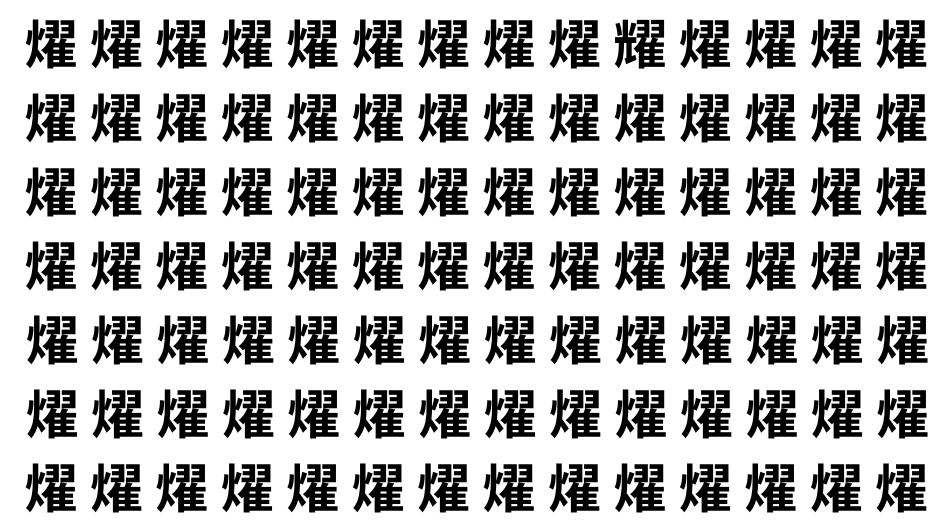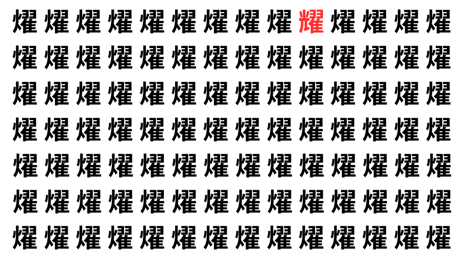 たくさんの「燿」の中に、よく似た別の漢字が1文字だけ隠れています。