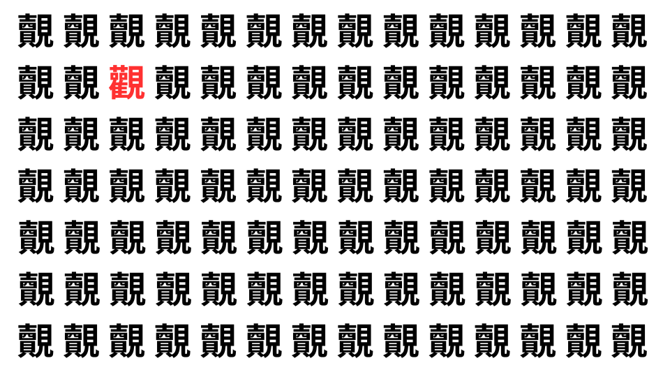 並んだ漢字の中に、ひとつだけ異なる文字が紛れています。集中して探し出し、気分をリフレッシュしましょう!