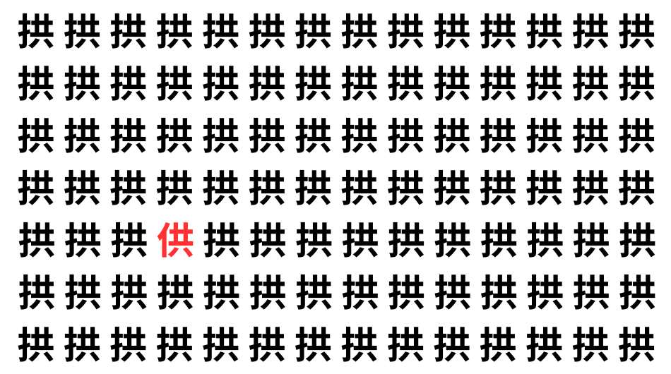 たくさんの「拱」の中に、よく似た別の漢字が1文字だけ隠れています。