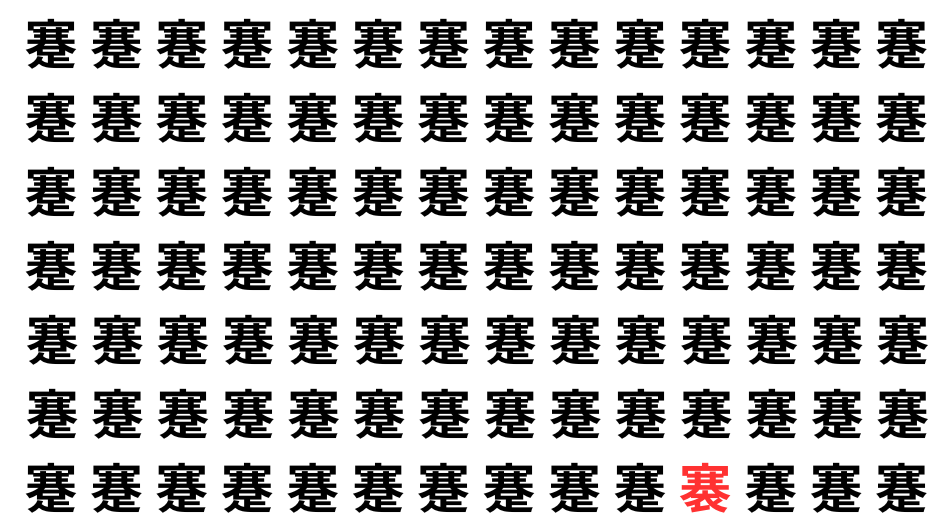 並んだ漢字の中に、ひとつだけ異なる文字が紛れています。集中して探し出し、気分をリフレッシュしましょう!