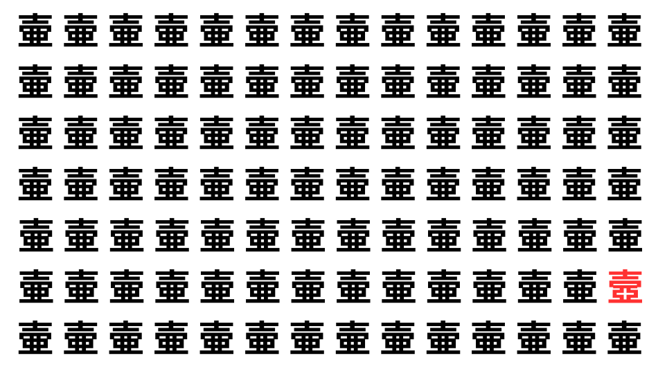 並んだ漢字の中に、ひとつだけ異なる文字が紛れています。集中して探し出し、気分をリフレッシュしましょう!