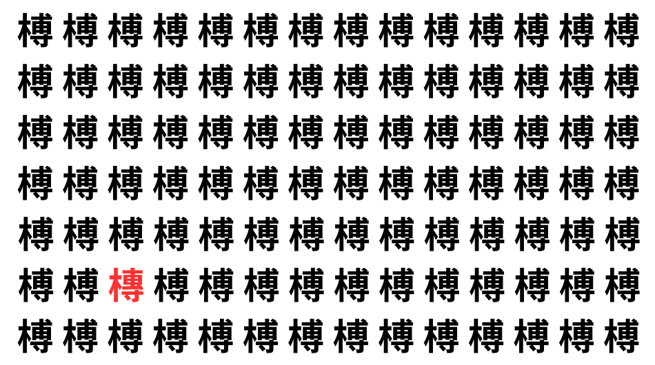 たくさんの「榑」の中に、よく似た別の漢字が1文字だけ隠れています。