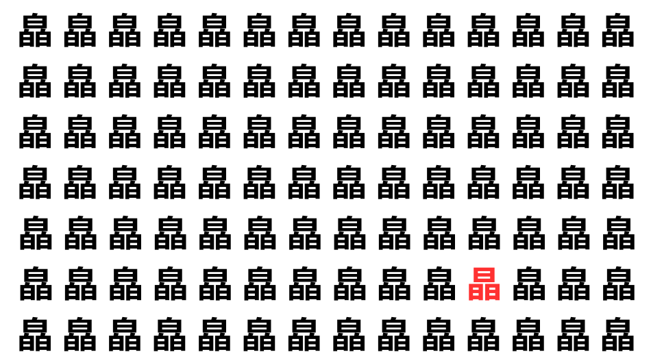 並んだ漢字の中に、ひとつだけ異なる文字が紛れています。集中して探し出し、気分をリフレッシュしましょう!