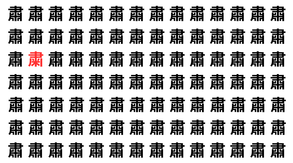 たくさんの「肅」の中に、よく似た別の漢字が1文字だけ隠れています。