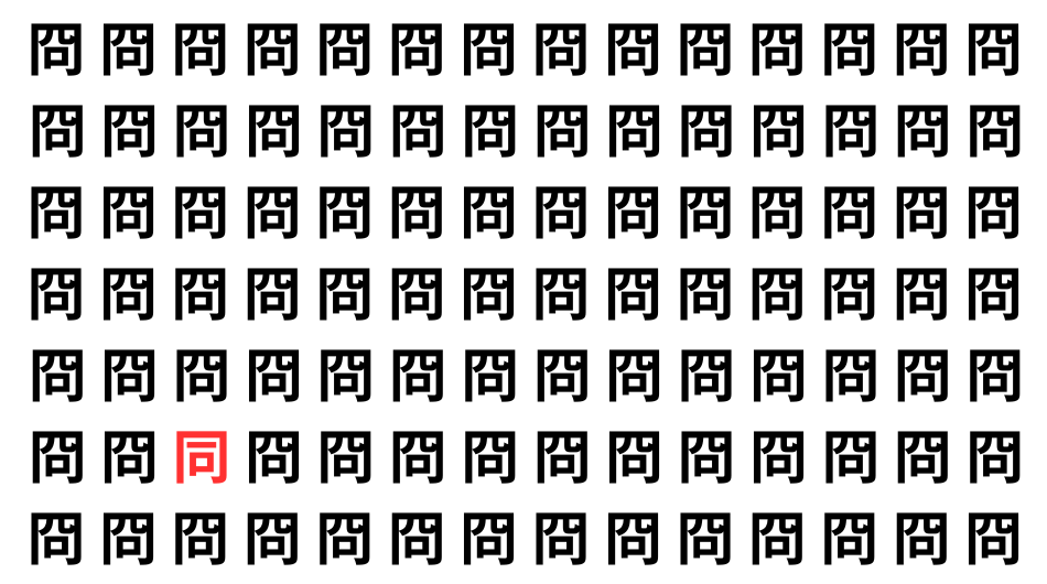 並んだ漢字の中に、ひとつだけ異なる文字が紛れています。集中して探し出し、気分をリフレッシュしましょう!
