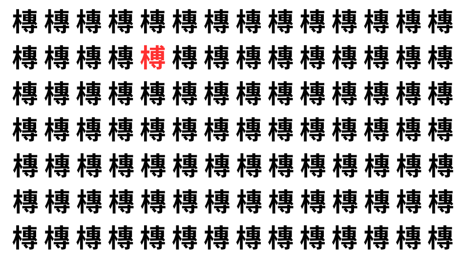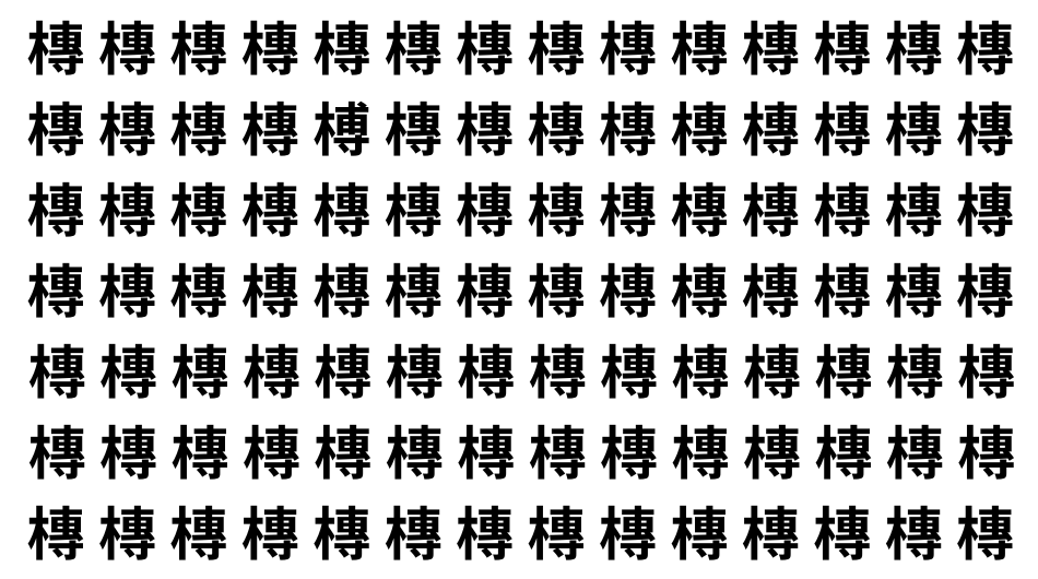 たくさんの「槫」の中に、よく似た別の漢字が1文字だけ隠れています。