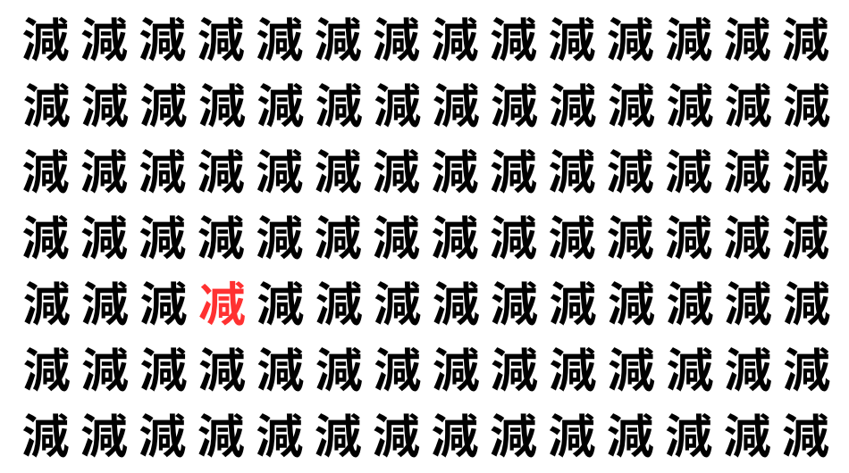 たくさんの「減」の中に、よく似た別の漢字が1文字だけ隠れています。