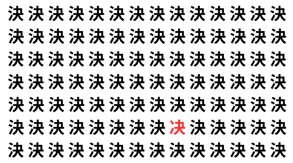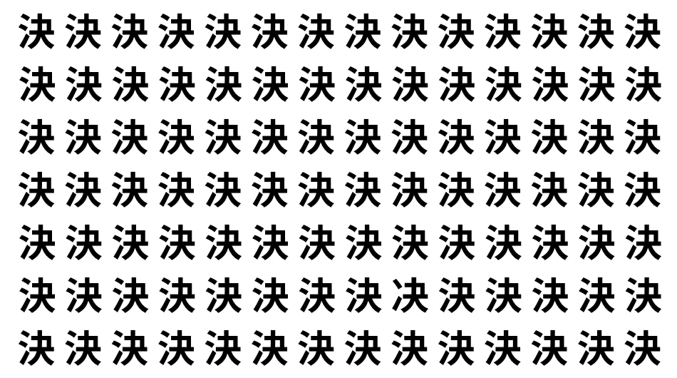 たくさんの「決」の中に、よく似た別の漢字が1文字だけ隠れています。
