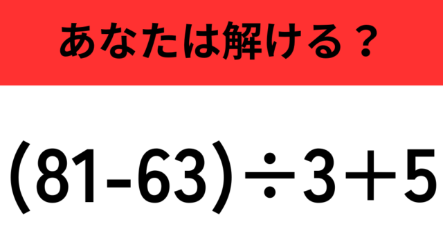 算数クイズ 【計算の順序に注意】「(81-63)÷3+5」正しく計算できる? 大人なら正解したい 2026年3月24日 flower https://do-gen.jp/entertainment/wp-content/uploads/2025/05/logo.png エンタメDO-GEN