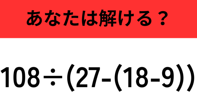 算数クイズ 【計算の順序に注意】「108÷(27-(18-9))」正しく計算できる? 解けなきゃ恥ずかしい 2026年4月2日 flower https://do-gen.jp/entertainment/wp-content/uploads/2025/05/logo.png エンタメDO-GEN