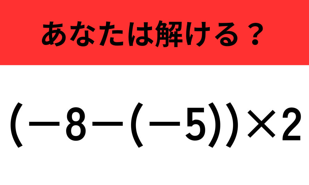 【計算の順序に注意】「(−8−(−5))×2」正しく計算できる?