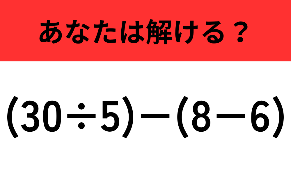 【計算の順序に注意】「(30÷5)−(8−6)」正しく計算できる?