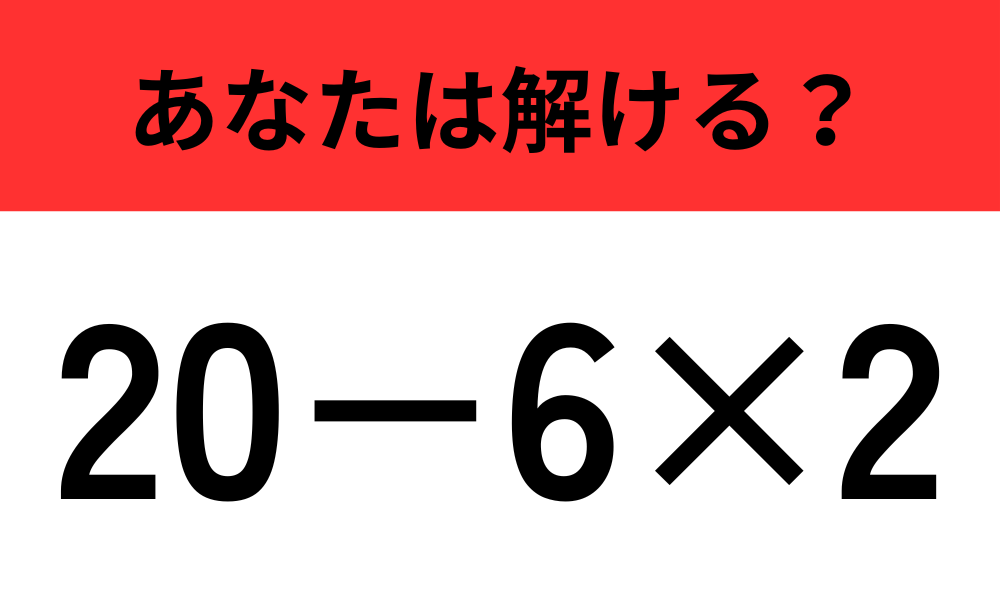 【計算の順序に注意】「20−6×2」正しく計算できる?