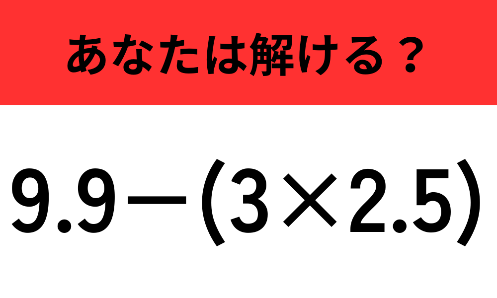 【計算の順序に注意】「9.9−(3×2.5)」正しく計算できる?