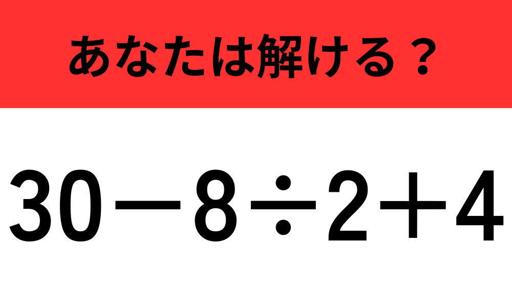 【計算の順序に注意】「30−8÷2+4」正しく計算できる?