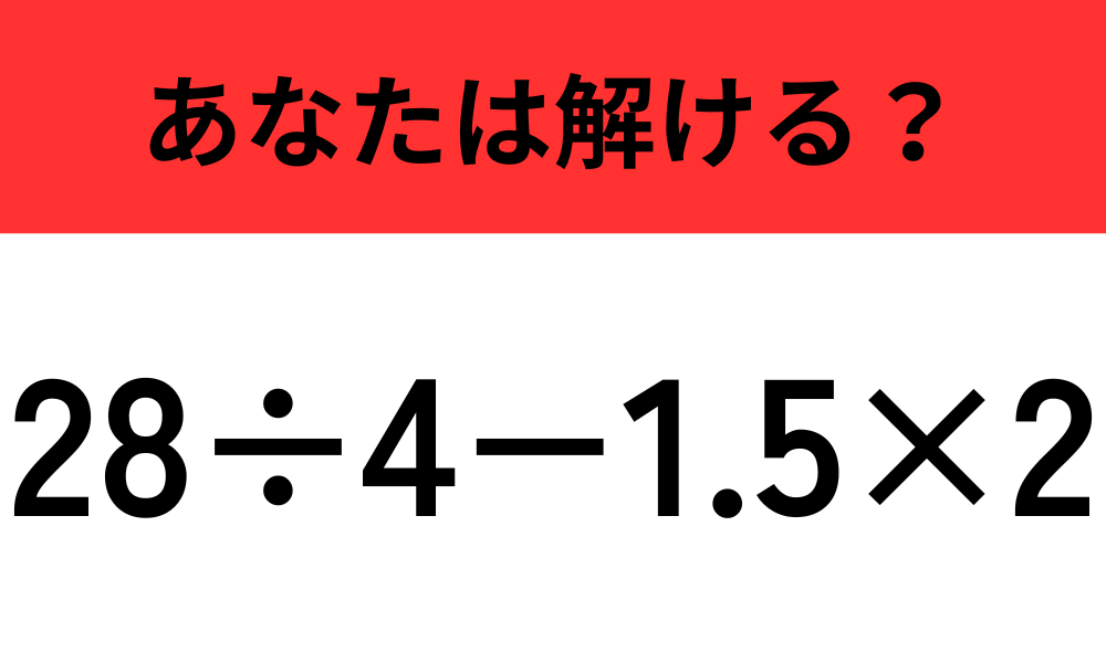 【計算の順序に注意】「28÷4−1.5×2」正しく計算できる?