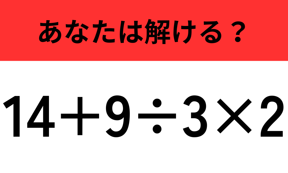 【計算の順序に注意】「14+9÷3×2」正しく計算できる?