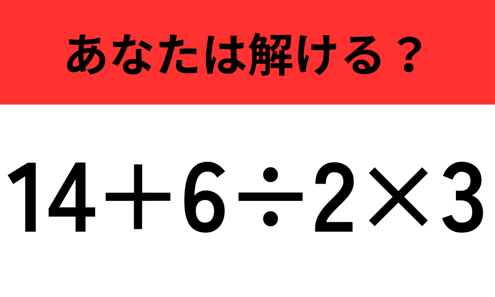 【計算の順序に注意】「14+6÷2×3」正しく計算できる?