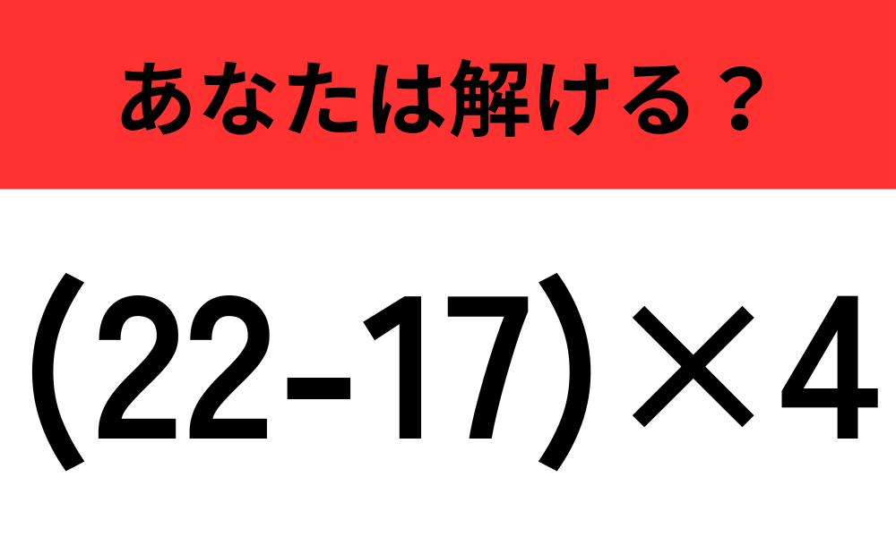 【計算の順序に注意】「(22-17)×4」正しく計算できる?