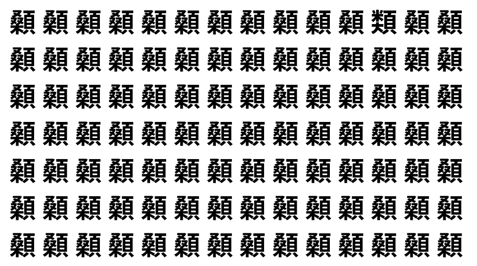 たくさんの「顙」の中に、よく似た別の漢字が1文字だけ隠れています。