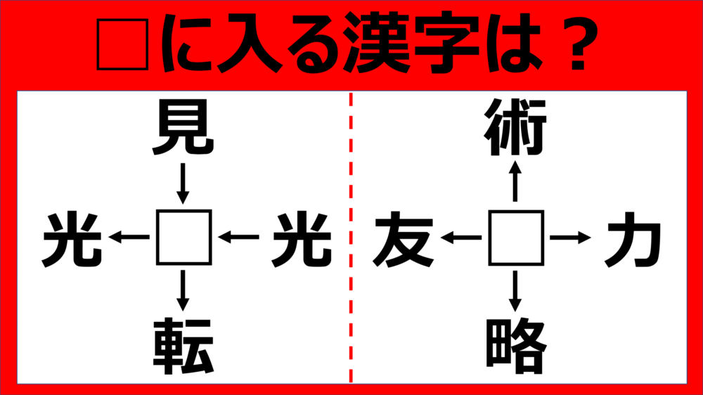 【漢字パズル】超難問!? 見□、光□、□転、□光・・・この□に入る漢字は何!?