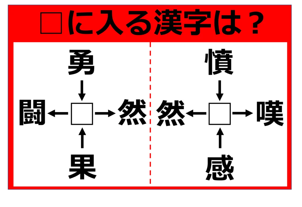 □に入る漢字が何か、頭の体操をしてみましょう。