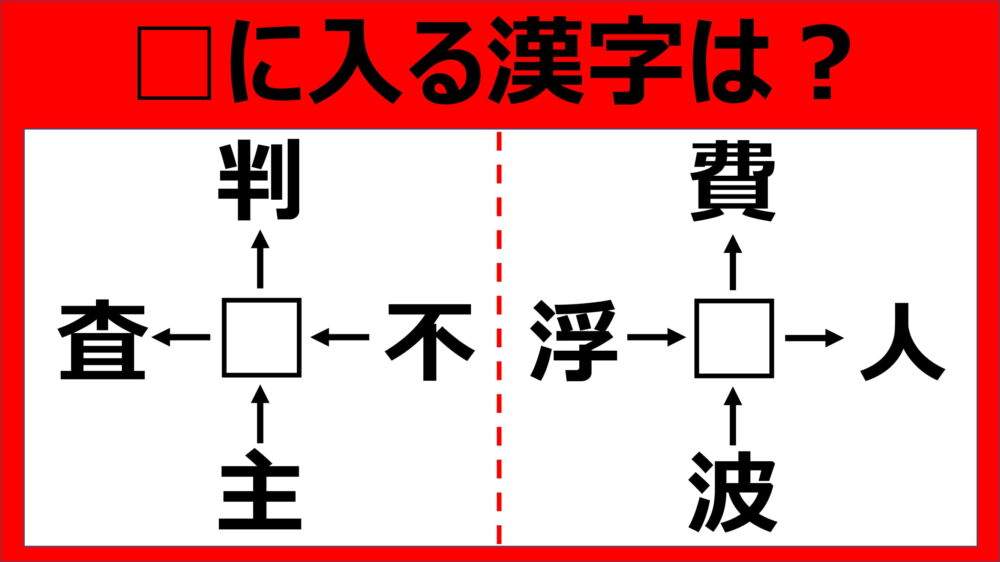 【漢字パズル】□判、不□、主□、□査  □に入る漢字は何…?