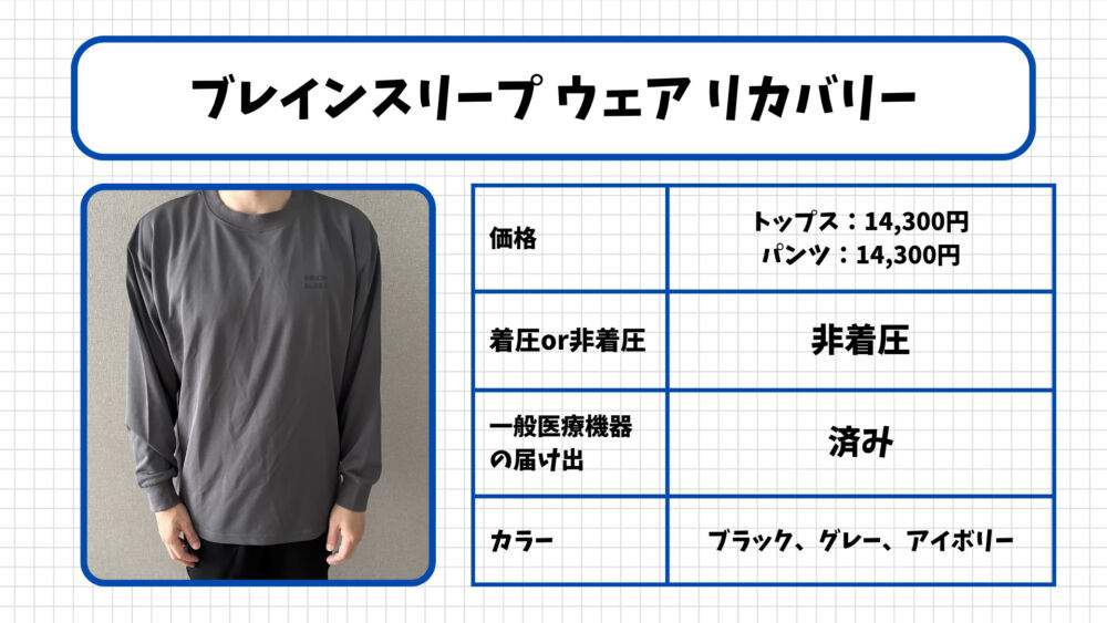 | ブレインスリープ | 一般医療機器 | 約14,300円〜 | メディック リカバリー ファイバー | 非着圧 | 睡眠 |